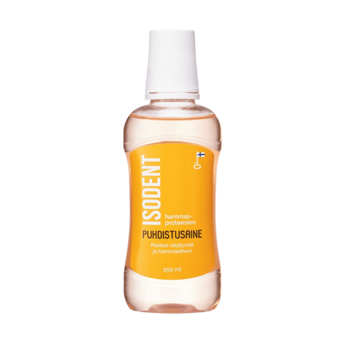 Bakteerien, sienikasvustojen ja värjäytymien lisäksi se liuottaa proteesistasi myös hammaskiven. IsoDent on nestemäinen tiiviste ja se myydään riittoisassa 250 ml pullossa, joka kestää yhdellä käyttäjällä jopa 3 kuukautta päivittäisessä käytössä.